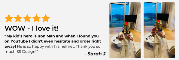 The Iron Helmet is your ultimate cosplay upgrade. Featuring voice-activated control commands, a Bluetooth finger-ring remote, and built-in touch-control panels, you get full command over light-up LED eyes that blink and flash expressions.